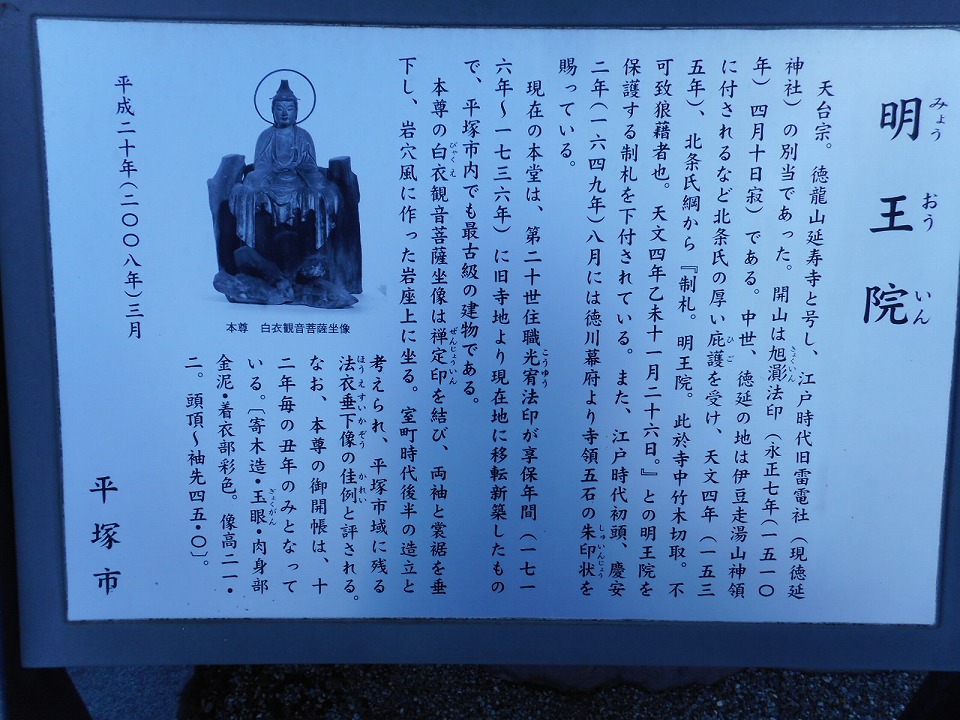 山号は「徳龍山」、院号は「明王院」、寺号は「延寿寺」です。
