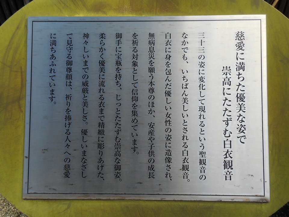 本尊は木造白衣観音菩薩坐像で、14世紀末~15世紀初頭の制作と推定されています。